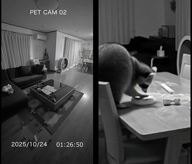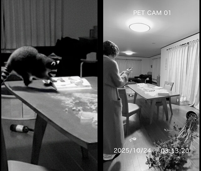 コンセプトは「実写×AIの融合」です。「『小学館の図鑑NEO』は『本物』=動物でさえ夢中にさせる」というアイデアを、ペットカメラを使ったモキュメンタリーにしたら面白くなるという予感がありました。ただ、「AIでつくりましたよ感」が香ると途端に冷めてしまうので細心の注意を払っています。実写で撮影しながら、その場で何度も何度も何度もアライグマの動画生成を繰り返しています。リアルに感じながらもクスッと笑えるバランスの表現を目指しました。